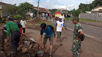 Semangat Warga Pagadungan Saat Bergotong- royong Perbaiki Jalan Rusak Di Pertigaan Kp. Kadeper Kelurahan Pagadungan Kecamatan Karangtanjung.